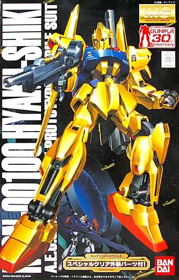 N/A | MSN-00100 Hyaku-Shiki Gunpla 30th Anniversary Ver. | Mobile Suit Zeta Gundam | 2009 diciembre | Relanzamiento limitado del MG-037 con partes de armadura transparentes. Lanzado para conmemorar el 30 aniversario de Gunpla. |