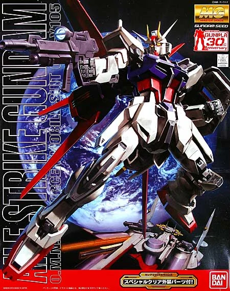 N/A | GAT-X105 Aile Strike Gundam Gunpla 30th Anniversary Ver. | Mobile Suit Gundam SEED | 2010 marzo | Relanzamiento limitado del MG-065 con partes de armadura transparentes. Lanzado para conmemorar el 30 aniversario de Gunpla. |